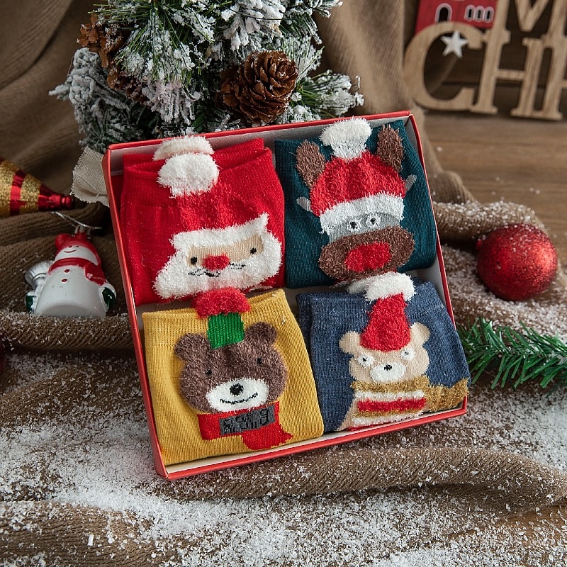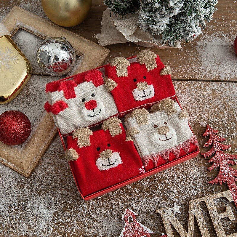 HOT ! Autumn And Winter New Product Cartoon Christmas Socks Gift Box 4 Pair Deer Medium Tube Cotton Socks Primordial Year Red Medium Tube Socks for Christmas Gifts