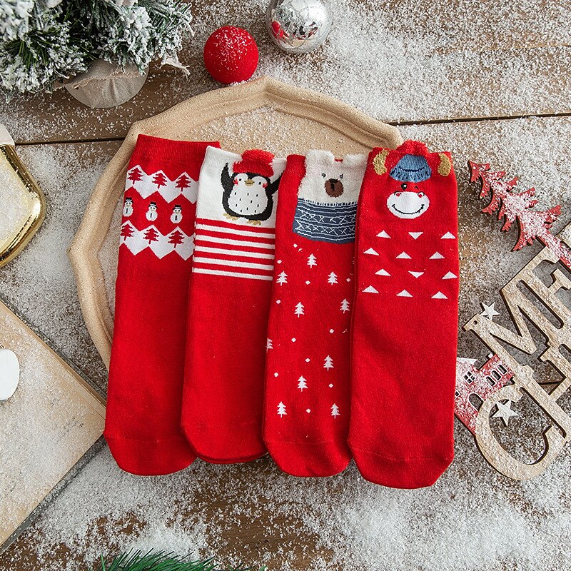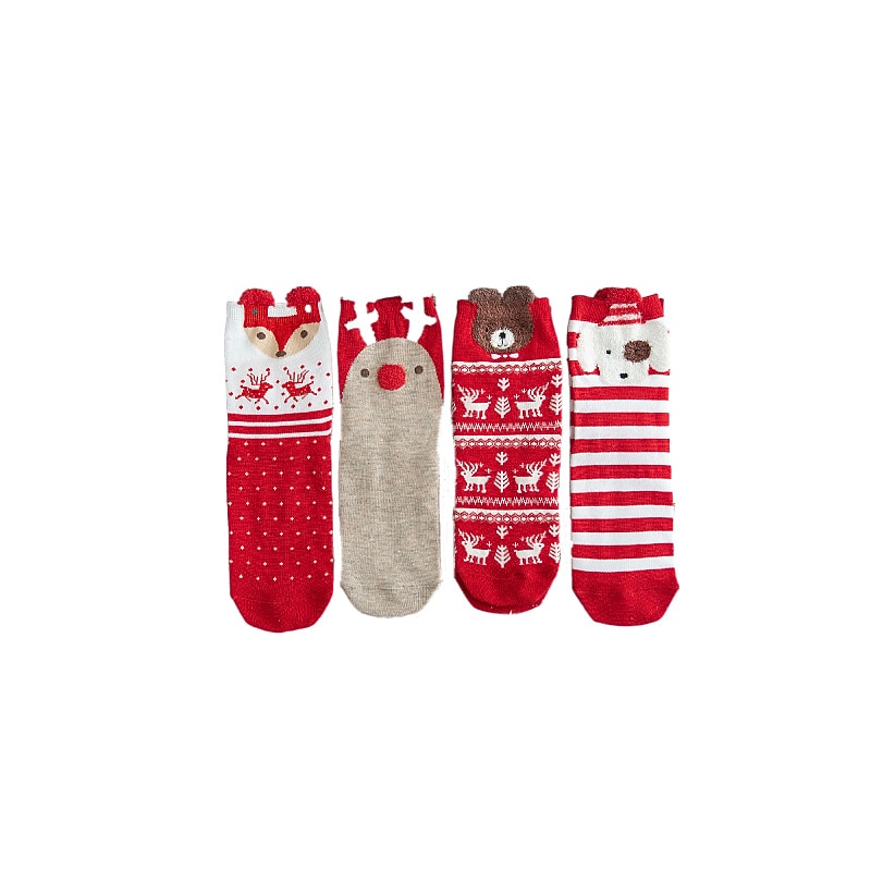 More information about Autumn And Winter New Product Cartoon Christmas Socks Gift Box 4 Pair Deer Medium Tube Cotton Socks Primordial Year Red Medium Tube Socks for Christmas Gifts