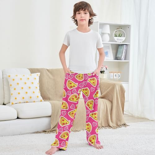 Boy's Pants Pink Pizza Lover Jogger Pants Elastic Waist Long Bottoms Trousers with Pockets 6-14 Years 7