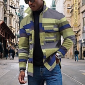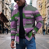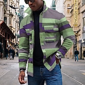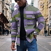 More information about Men's Striped Geometric Pattern Collared Shirt Fleece Shirt Shirt Jacket Long Sleeve Streetwear Sporty Casual Outdoor Daily Going out Summer Spring Turndown Pocket Print Yellow Pink Blue Purple Orange