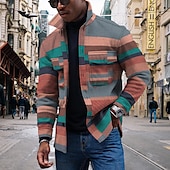 Men's Striped Geometric Pattern Collared Shirt Fleece Shirt Shirt Jacket Long Sleeve Streetwear Sporty Casual Outdoor Daily Going out Summer Spring Turndown Pocket Print Yellow Pink Blue Purple Orange 10