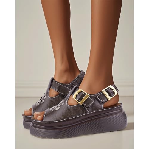 HOT ! Women's Floral Brown Platform Sandals Adjustable Buckle with Non-Slip Sole T-Strap Comfort Open Toe Slip On Summer Beach Sandals
