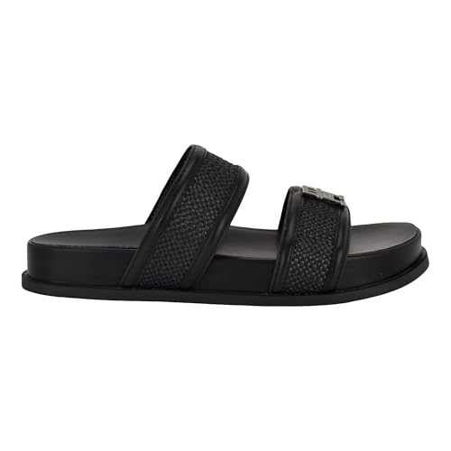 • Add a textured yet luxe touch of flair to your ensembles wearing the Tommy Hilfiger Jiana platform sandals. Featuring enameled logo hardware, these sandals bring a signature touch of sophistication to their sleek design. The straps rest atop a cushy,