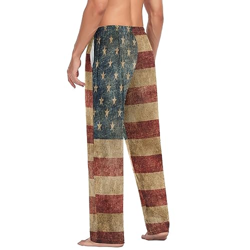 Vintage Grunge American Flag Pajama Pants Red Star Strip Men's Pajama Bottoms Lounge Sleepwear PJs Sleep Pants L 1