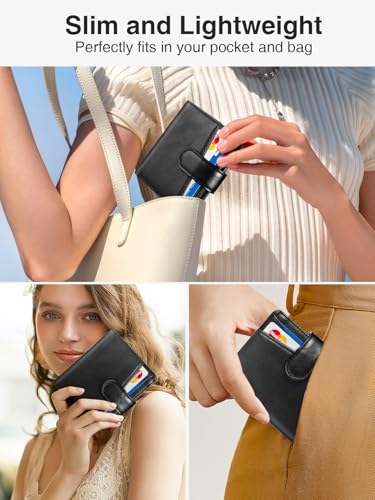 • 【Large Capacity & Compact】It has 8 card slots, 1 ID window and 1 cash compartment; Easy to hold your cards, cash, receipts, banknotes, etc; 4.05''x3.93''x0.59'', portable in your pocket, handbag or backpack