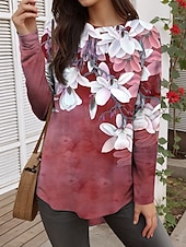 More information about Women's T Shirt Floral Graphic Plants Vintage Fashion Casual Long Sleeve Crew Neck Long Tops Daily Weekend Print Red Blue Purple Green Spring, Fall, Winter, Summer