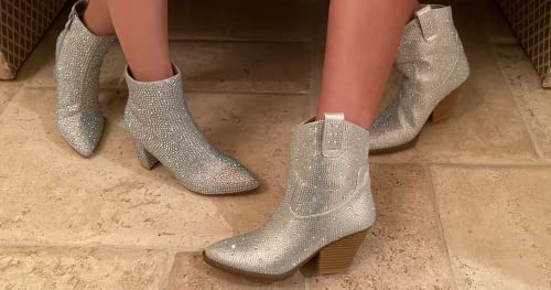 FOREVER Women Rhinestone Block Chunky Heel Ankle Bootie River-01 Champagne 10 2
