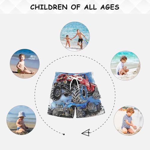 Pigsaly Boys Swim Trunks Hand Drawing Blue Monster Truck Red Boys Board Shorts Swimsuit Swimwear Summer Bathing Suit S 4