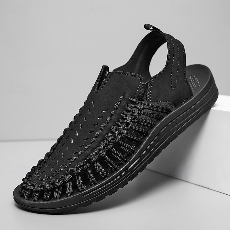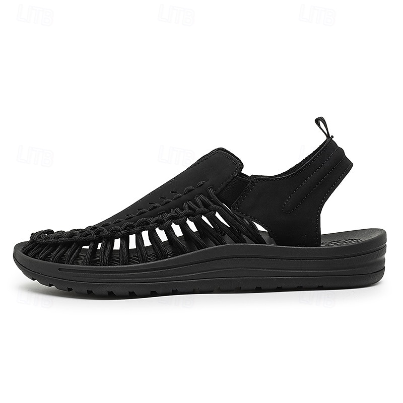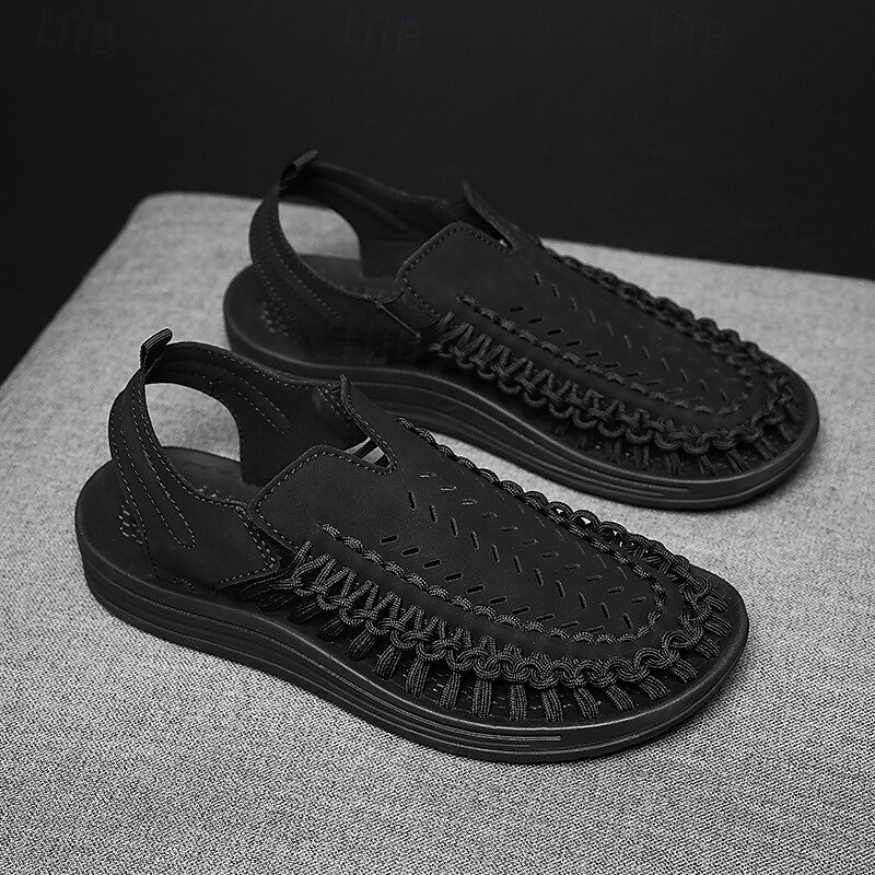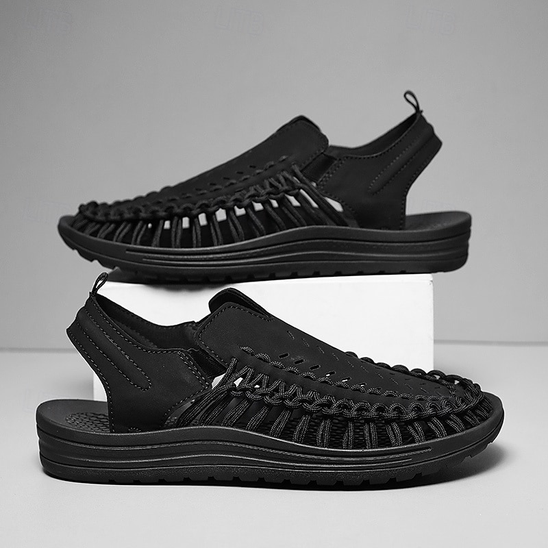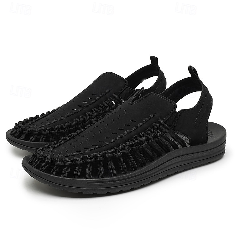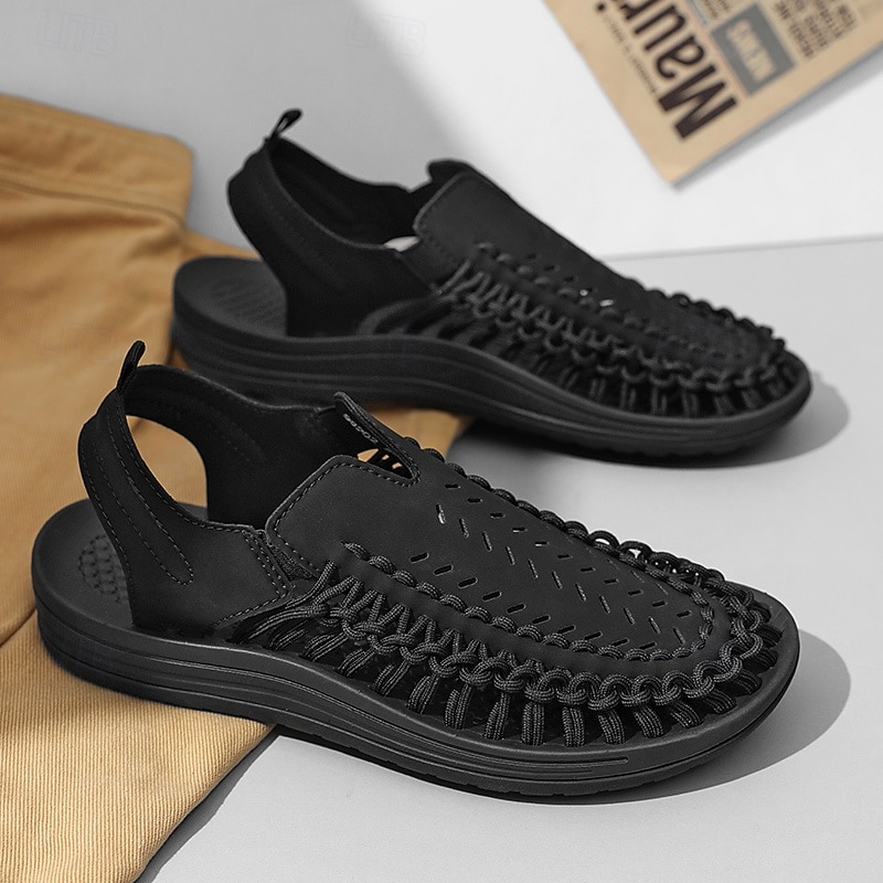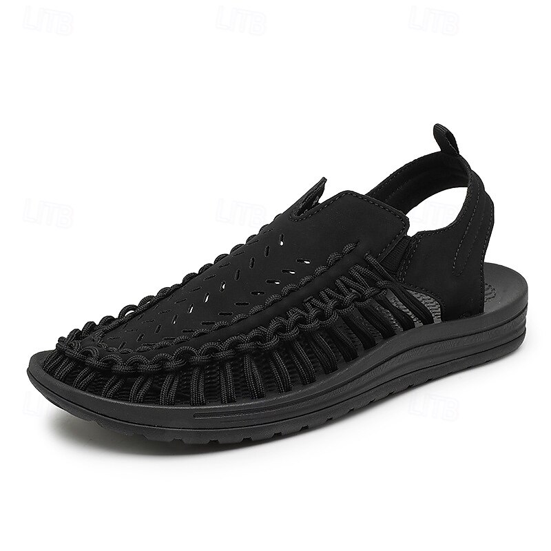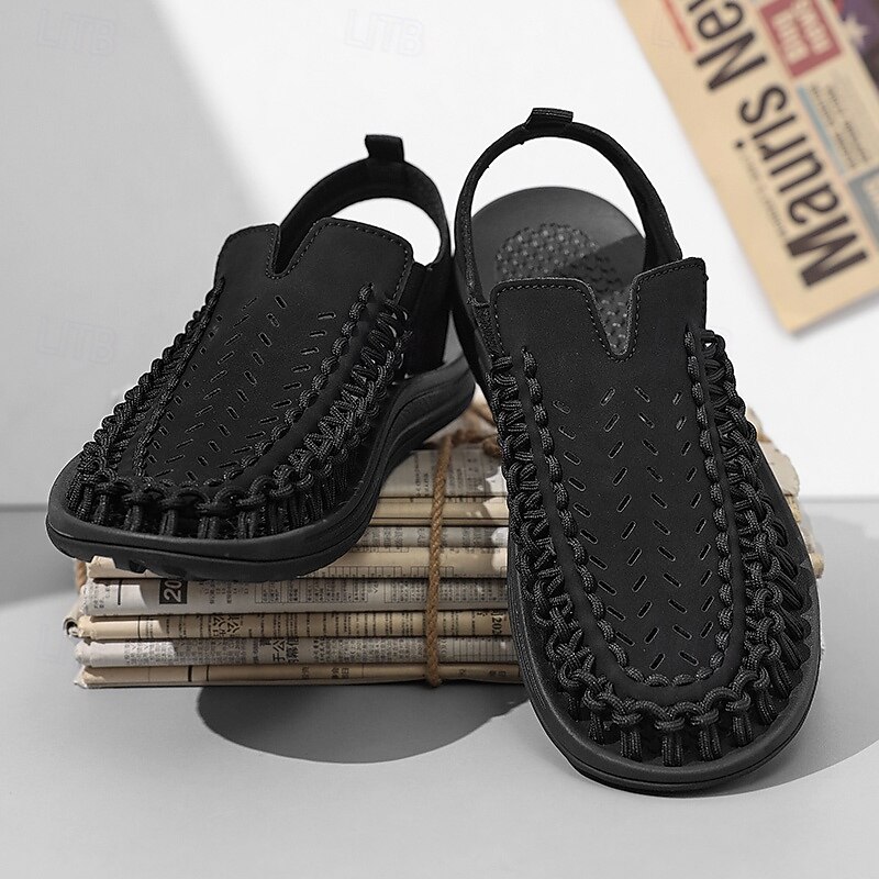 HOT ! Men's Tan Slip-On Outdoor Sandals with Braided Detailing, Casual Style for Summer and Beach Activities
