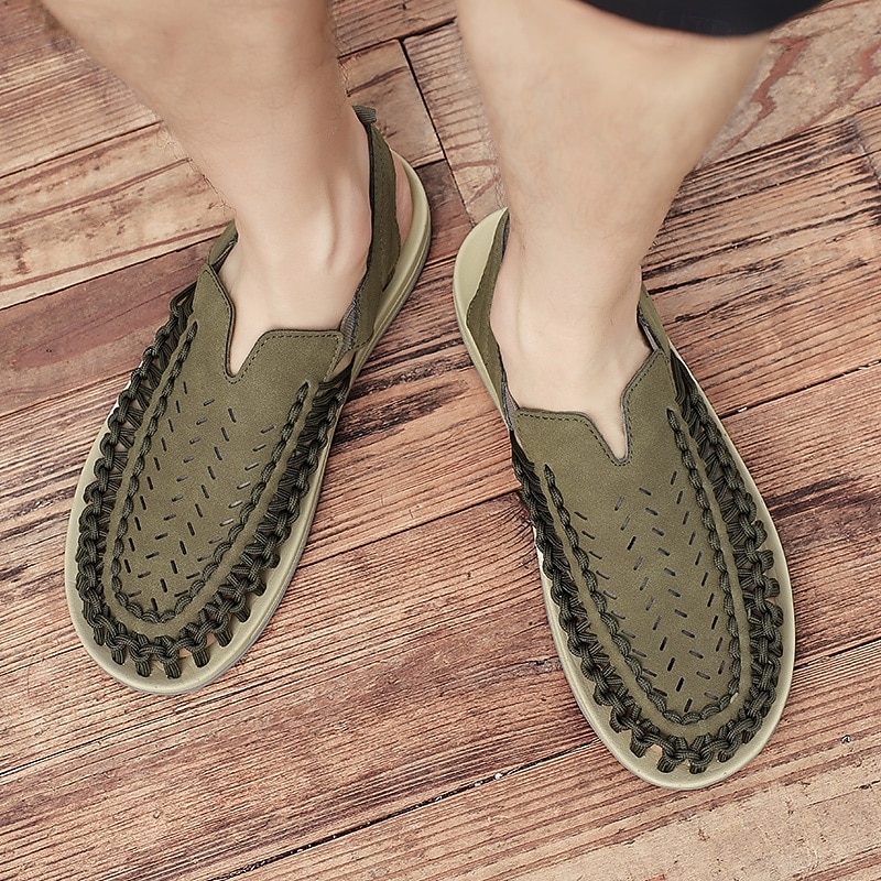 Men's Tan Slip-On Outdoor Sandals with Braided Detailing, Casual Style for Summer and Beach Activities 22