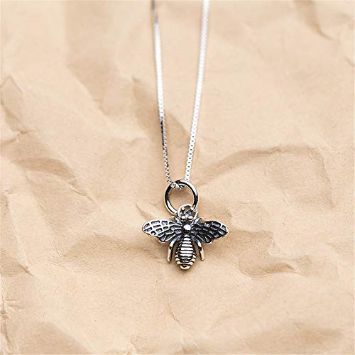 HOT ! Dtja Vintage Bee Necklace for Women Girls Men 925 Sterling Silver Oxidized Charm Bumblebee Honeybee Pendant Choker Necklaces Adjustable Box Chain 18 inches Fashion Punk Retro Jewelry