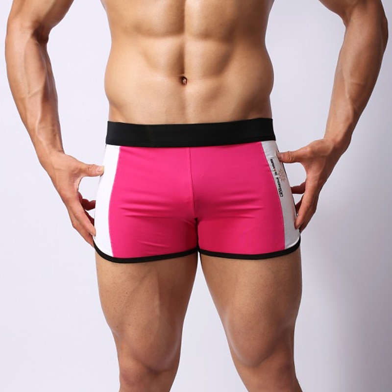 Men's Swimwear Swim Trunks Swim Briefs Elastic Waist Color Block Letter Breathable Soft Simple Comfort White Pink 11
