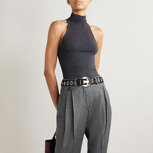 • 【Elegant Gold Details】: This gold buckle belt features eye-catching gold grommets that enhance its stylish design, adding a luxurious touch to your outfit.