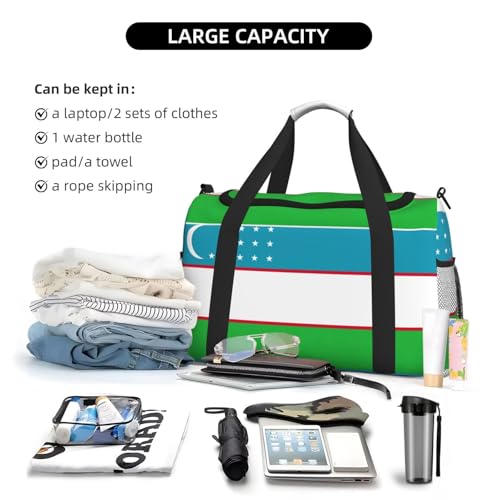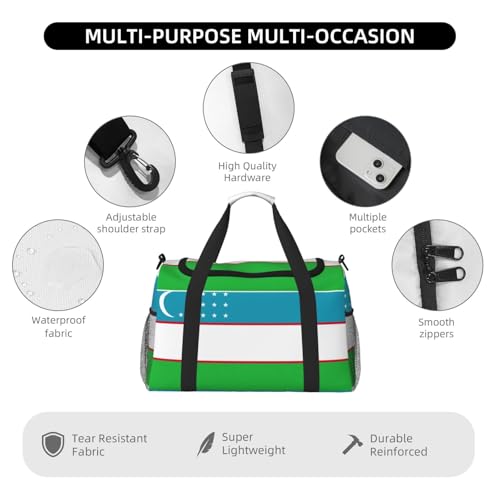 HOT ! Flag of the Republic of Uzbekistan print Travel Duffle Bag Gym Bag for Women,Puffer Tote Bag,Weekender Overnight Bag Organizer