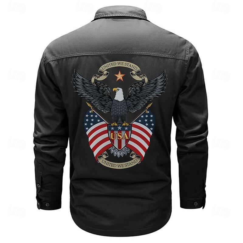 More information about Men's Eagle US Flag Work Shirt Western Shirt Cargo Shirt Long Sleeve Casual Sports & Outdoor Going out Fall Winter Turndown Print Black Army Green Khaki