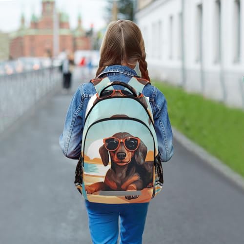 ALAZA Teens School Backpack Cute Dachshund Dog Beach Palm Tree Laptop Backpack with Reflective Strap, Travel Backpack Casual Daypack for Elementary Primary middle Bookbag 6