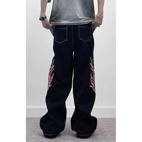 More information about Y2K Retro high Street Flame Printed Wide Leg Jeans Hip-hop Loose Straight Leg Pants for Men and Women