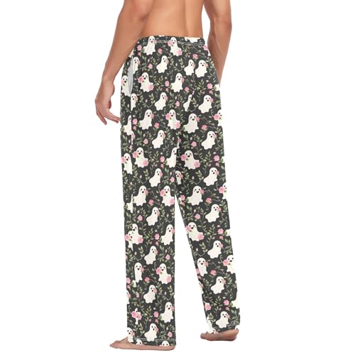 Mens Cotton Pajama Pants Sleep Lounge Pj Bottoms Sleepwear with Pockets Drawstring S Ghost Pink Rose 6