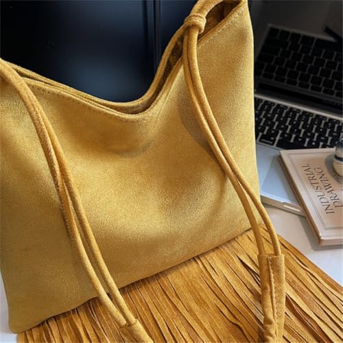 HOT ! Women Retro Suede Leather Shoulder Bag Slouchy Fringe Crossbody Handbag Medium Hobo Tote Satchel Lightweight Purse