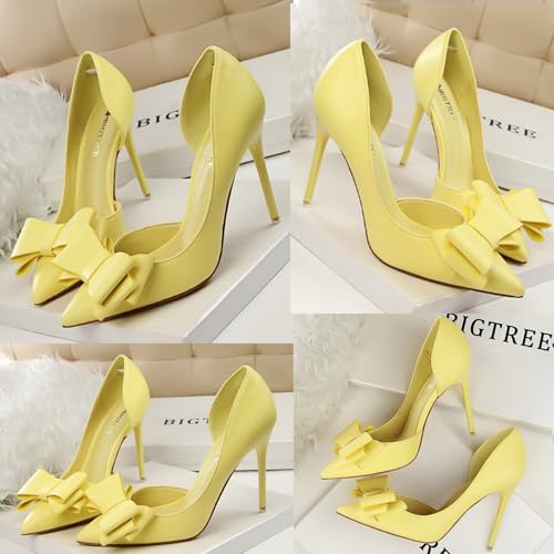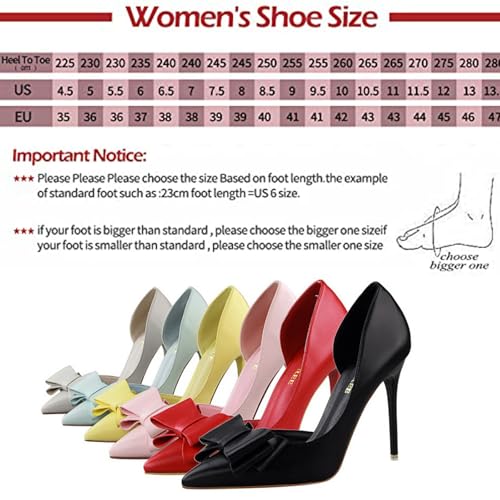 • 【Features】: Classic high heels, about 3.93 inches stiletto heels, slip-on bow design makes the shoes look more cute and elegant, one-step, easy to put on and take off.