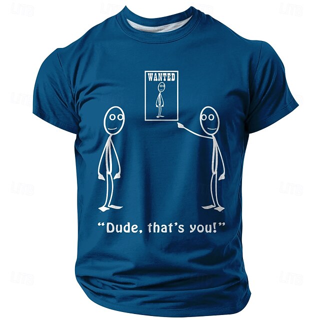 HOT ! Men's Funny 'Wanted - Dude, That's You!' Graphic T-Shirt, Playful Pun Black Short Sleeve Tee