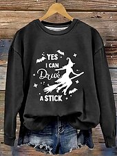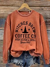 More information about Halloween Women's Pullover Sweatshirt Witch Graphic Letter Fashion Casual Long Sleeve Crew Neck Regular Tops Street Dailywear Casual Print Black Orange Green Fall Winter
