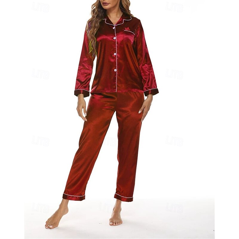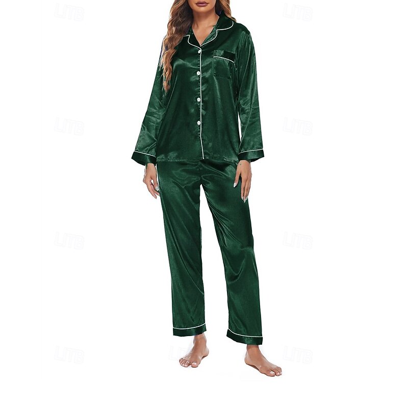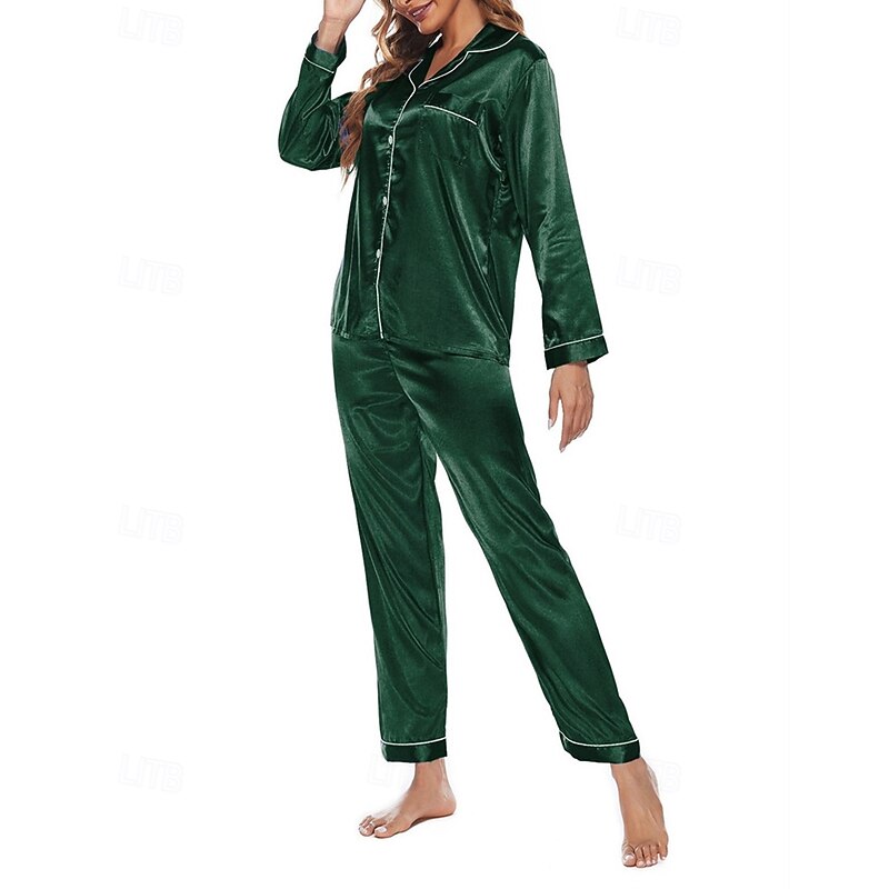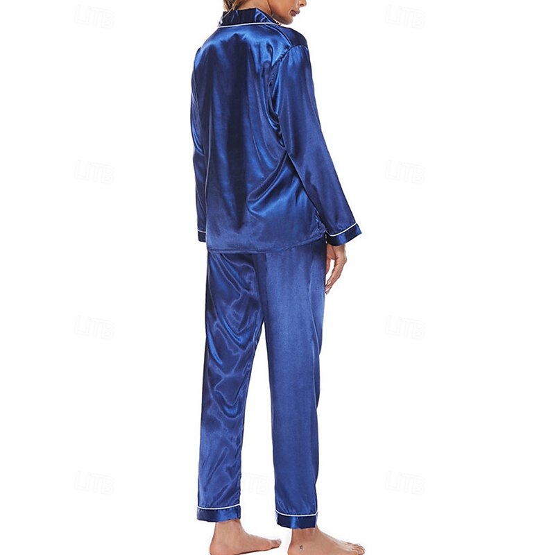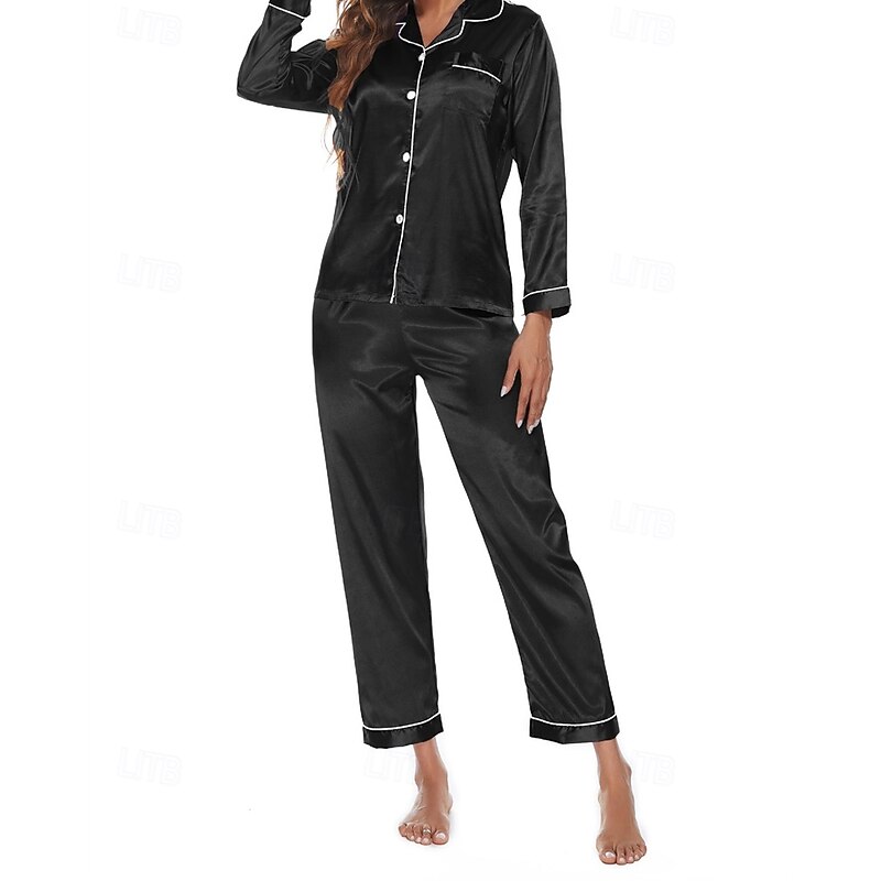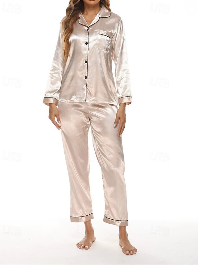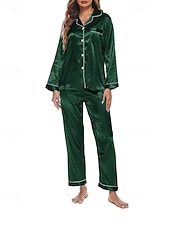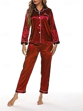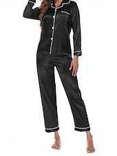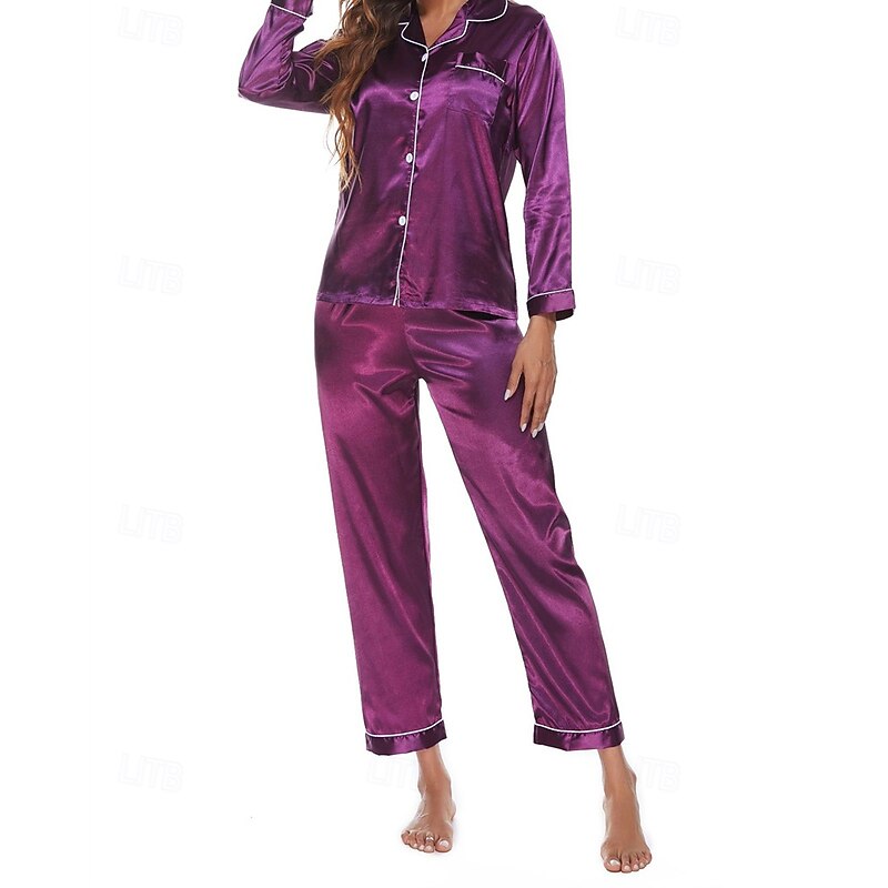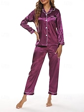 More information about Women's Loungewear Fashion Pure Color Buttons Pant Daily Bed Long Sleeve Lapel Lake blue Black Champagne Wine Purple Summer Spring