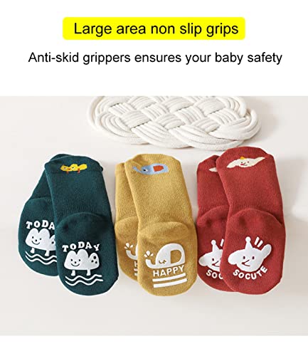 • 【PERFECT for EVERYDAY】 Floor socks with grips are a basic essential of your child's wardrobe, and different kinds of style are perfect for any occasion. A varitey of neutral colors to mix as well with multiple outfits. Cute Cartoon pattern kids socks keep your baby warm with fashionable look! Perfect for everyday.
