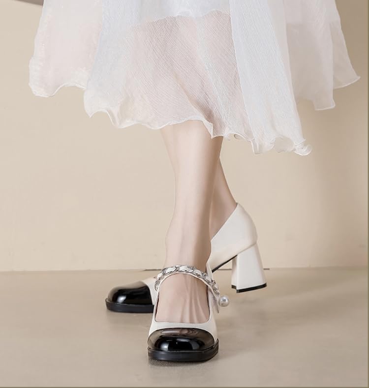 • 【Multi-faceted Design】: Pearl chain buckle decorative buckle, highlighting your elegant temperament. The thick high heel design can lengthen the leg line and increase your sexy charm. The rubber sole design is non-slip and wear-resistant, bringing you stable and safe walking. The thick heel and thick sole design provide a comfortable fit, and every step is just right and full of comfort.