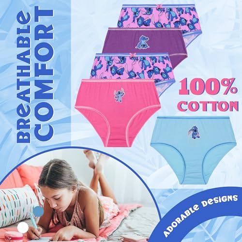 HOT ! Disney Stitch Girls Knickers, Comfy Breathable Cotton Underwear for Kids - Pack of 5
