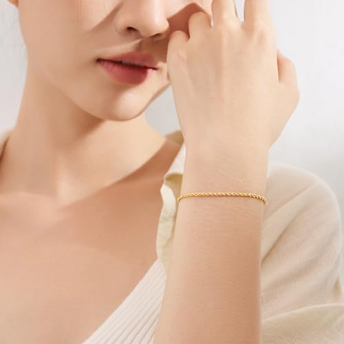 18K Gold Bracelet for Women Link Bracelets Chain Bangle Dainty Wheat Bracelet Trendy Jewelry Adjustable Stackable Chunky Fashion Layering Simple Twisted Bangle Solid Yellow Gold Gifts KH075987 6