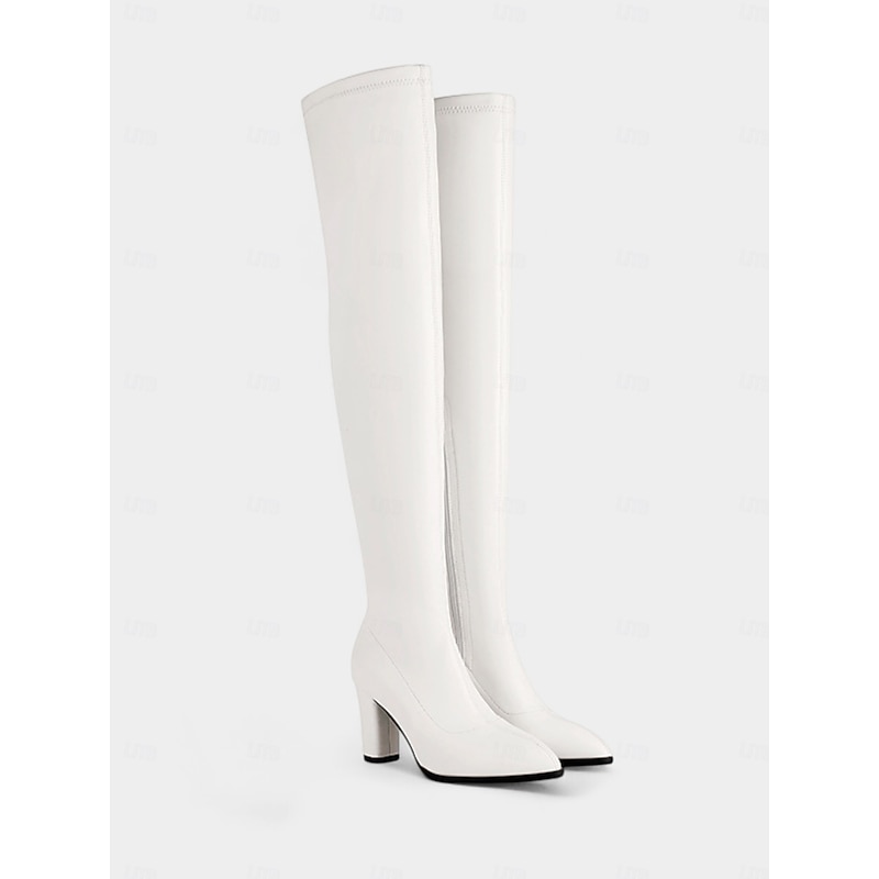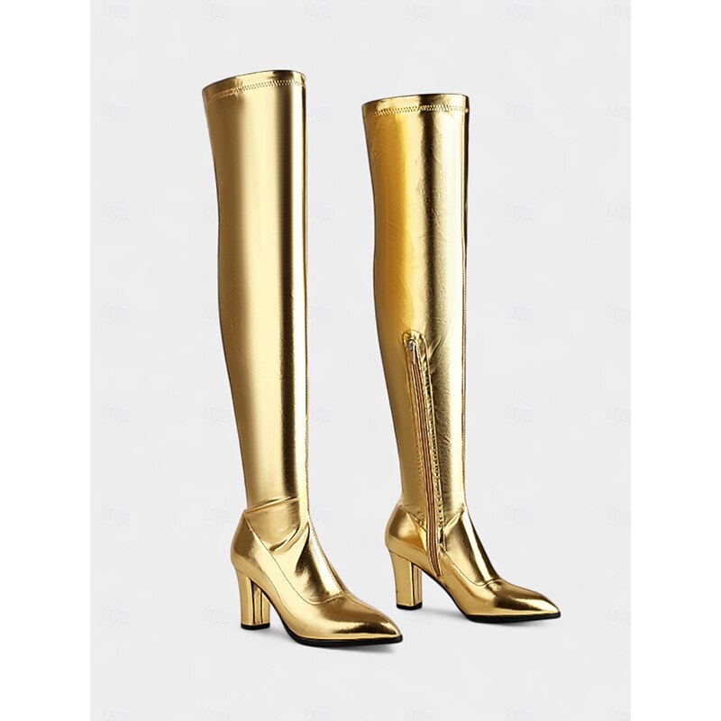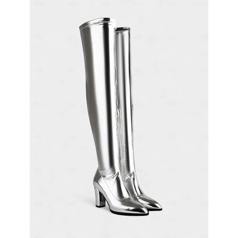 Women's Brown Faux Leather Over the Knee Fashion Boots – High Heel Pointed Toe Thigh High Shoes, Elegant Style for Parties, Cosplay and Street Fashion 24