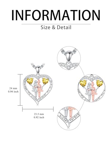• Sister Pendant - Heart Birthstone Gifts for Women --- This exquisite sister necklace features a heart-shaped birthstone stone that is 2X bigger than competitors'. As you might expect, the pendant is a big one, not in dainty style. However, the recipient will not be disappointed, as the actual necklace is truly captivating.