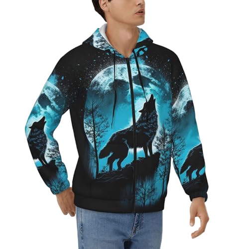 VOSERY Blue Full Moon Wolf Zip Up Hoodie Men - Casual Men's Fashion Hoodies & Sweatshirts, Long Sleeve Sports Hooded Jacket 1