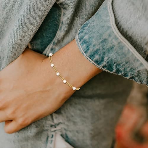 SISGEM 14k Gold Freshwater Cultured Pearl Layered Bracelet for Women, 14kt Wrist Jewelry Gifts for Her, 6.2-7.8 inches 7