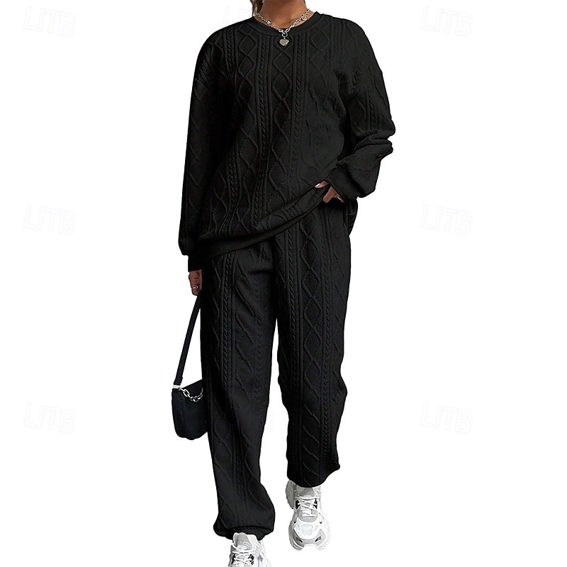 $35.99 - Women's Pullover Sweatshirt Lounge Suits Cable knit Solid Colored Clothing Suit Fall & Winter Black White Gym Training Running Fashion Long Sleeve Sport Activewear Micro-elastic Loose Fit 2025. Shop for cheap Tracksuits online? Buy at lightinthebox.com on sale today!