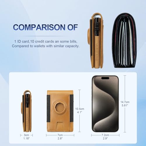 More information about Bifold Airtag Wallet with Magnetic Card Holder & RFID Blocking, MagSafe Card Holder for iPhone12~16, Men Wallet with Genuine Leather, Stretch Front Pocket, Carteras Hombres