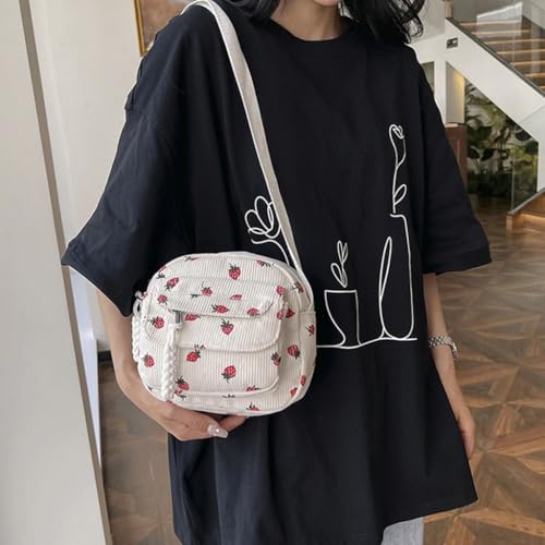 HOT ! Japanese Harajuku Corduroy Crossbody Bag with Cute Strawberry Pattern Compact Small Shoulder Purse for Women and Girls