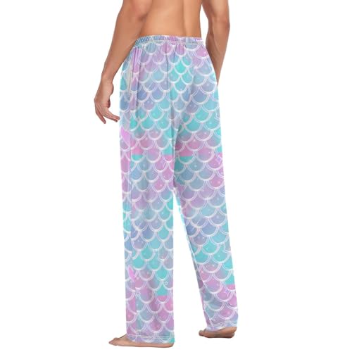 Men’s Colorful Mermaid Scales Pajama Pants with Pockets, Comfortable Lounge Sleep Bottoms#151 2