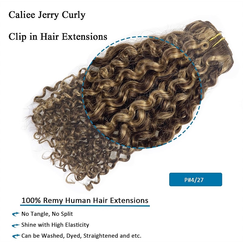 $108.99 - Two Tone Color 14Inch Jerry Curly Clip in Hair Extension Human Hair #4 Dark Brown Color with #27 Strawberry Blonde Color 3B 3C Curly Double Weft with 7pieces 120Grams Per Pack 2025. Shop for cheap Clip in Hair Extensions online? Buy at lightinthebox.com on sale today!
