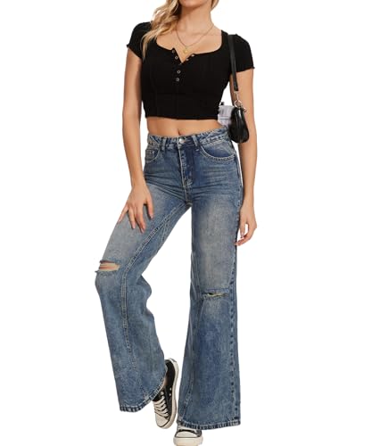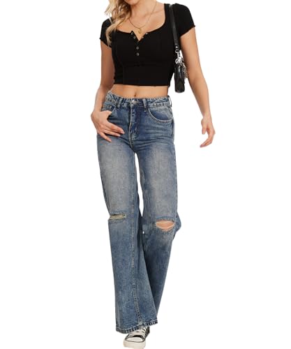 More information about Beautiful Nomad Women's Petite Ripped Jeans Casual Wide Leg Baggy Distressed Denim Pants