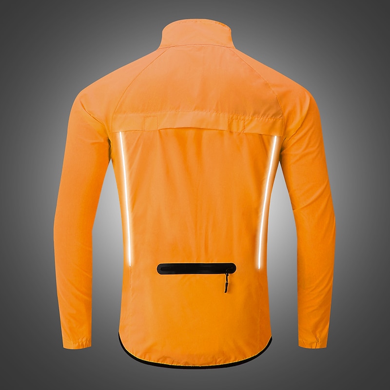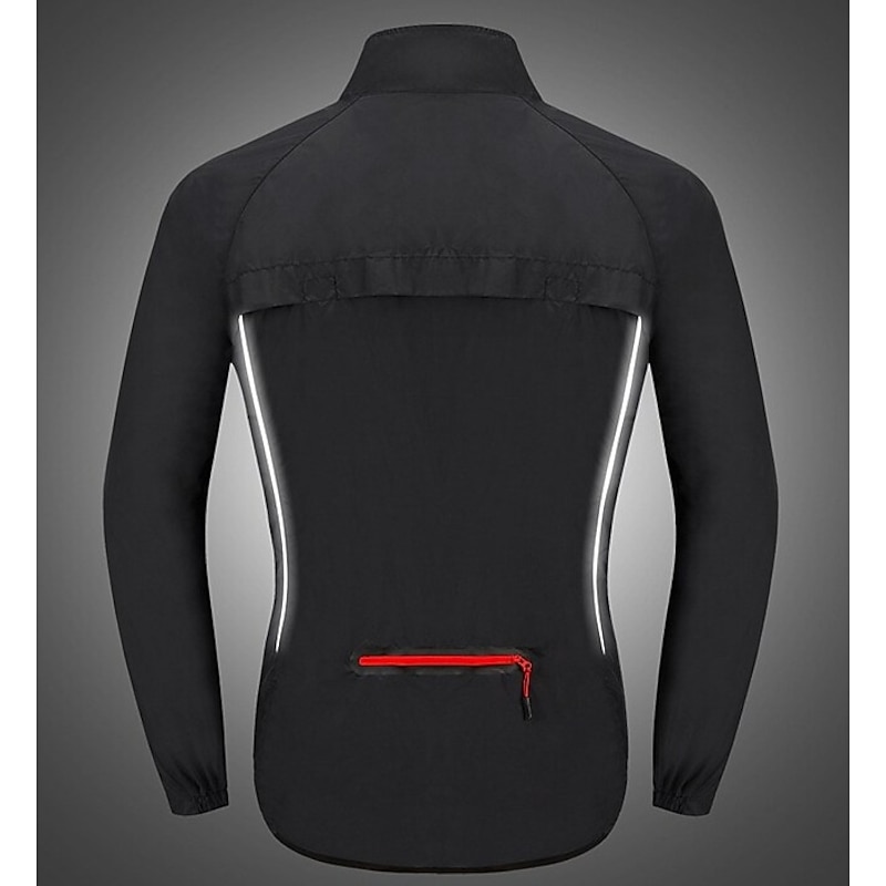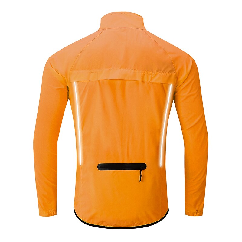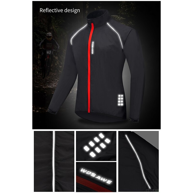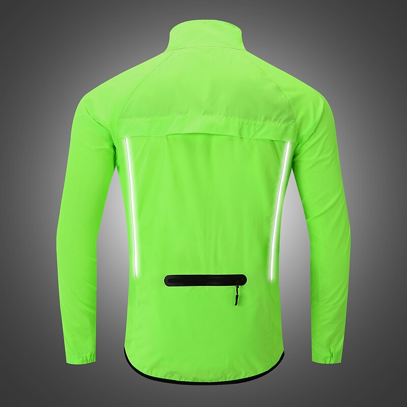 Highlights 1. Stay comfortable and dry during your outdoor workouts with this breathable and drizzle resistant long sleeve jacket, made of high quality soft polyester with a breathing grid on the back for reduced driving resistance and protection from splashes and light rain. 2. Stay safe during night runs or rides with the high visibility design of this athletic jacket, featuring reflective elements for maximum visibility. 3. Carry your necessities securely with the large zippered pocket on the back that can also be folded into a portable bag. 4. The adjustable cuffs and elastic band of this windproof jacket ensure tightness and protection from wind, preventing it from riding up while riding or running. 5. Whether worn over a winter coat or as a coat in spring, summer, and fall, this lightweight and versatile windbreaker is perfect for long and short night rides, cycling, and other outdoor activities. 6. Ideal for both mountain bike MTB and road bike cycling, this men's jacket is waterproof, quick-drying, and windproof, making it a must-have for any sports enthusiast.