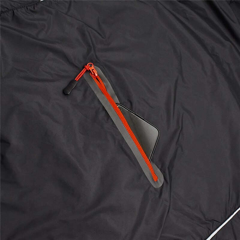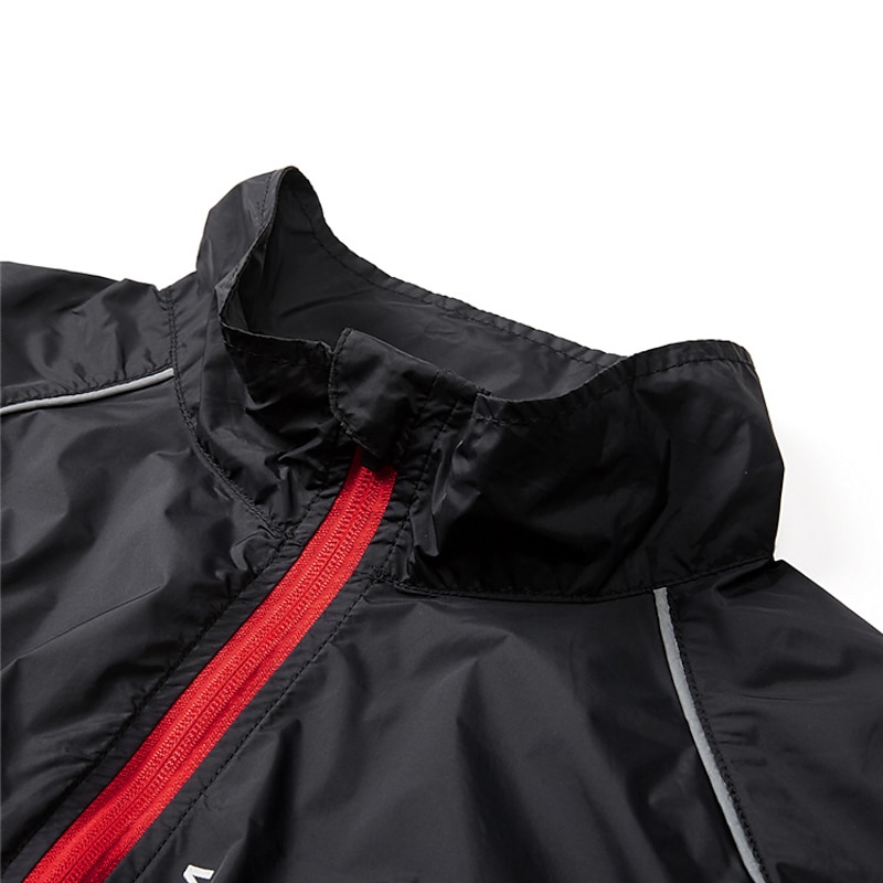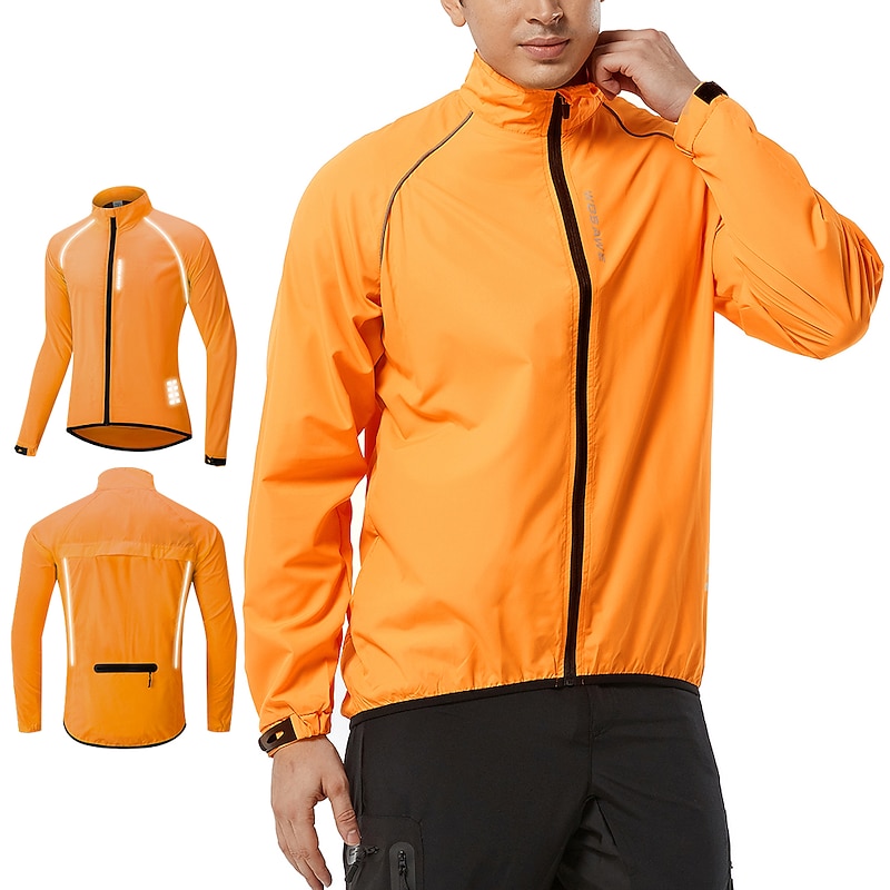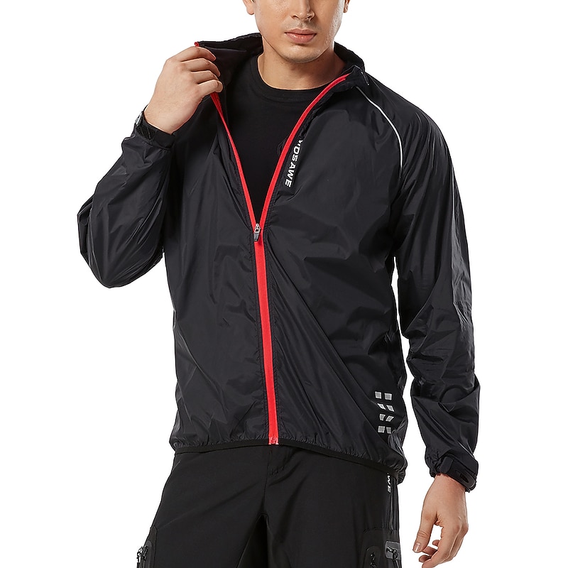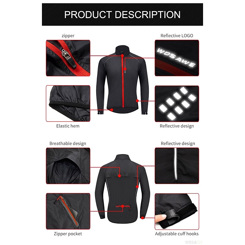Highlights 1. Stay comfortable and dry during your outdoor workouts with this breathable and drizzle resistant long sleeve jacket, made of high quality soft polyester with a breathing grid on the back for reduced driving resistance and protection from splashes and light rain. 2. Stay safe during night runs or rides with the high visibility design of this athletic jacket, featuring reflective elements for maximum visibility. 3. Carry your necessities securely with the large zippered pocket on the back that can also be folded into a portable bag. 4. The adjustable cuffs and elastic band of this windproof jacket ensure tightness and protection from wind, preventing it from riding up while riding or running. 5. Whether worn over a winter coat or as a coat in spring, summer, and fall, this lightweight and versatile windbreaker is perfect for long and short night rides, cycling, and other outdoor activities. 6. Ideal for both mountain bike MTB and road bike cycling, this men's jacket is waterproof, quick-drying, and windproof, making it a must-have for any sports enthusiast.