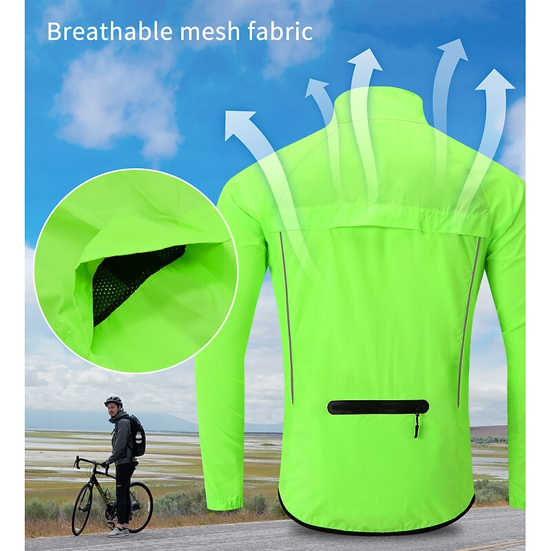 WOSAWE Men's Windbreaker Cycling Jersey Cycling Jacket High Visibility Waterproof Windproof Cycling Bike Jacket Windbreaker Mountain Bike MTB Road Bike Cycling City Bike Cycling Navy Green Black Bike 22