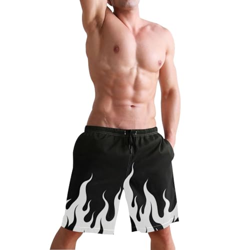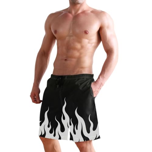 Black Fluorescent Cool Flame White Shorts Swim Breathable Beach Shorts for Men 8”/ 9” Long XL Size Water Park Sliding 7