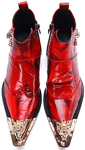 HOT ! Santimon Mens Dress Boots Western Leather Fashion Brown Casual Pointed-Toe Metal Tip Shoes