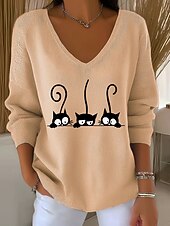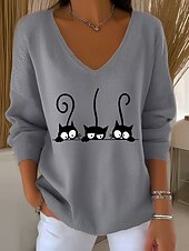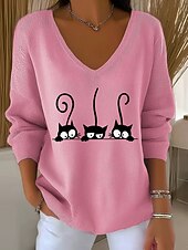 More information about Women's Sweater Pullover Fashion Streetwear Casual Graphic Animal V Neck Oversized Knitted Long Sleeve Regular Tops Knit Outdoor Daily Pink Orange Spring Fall