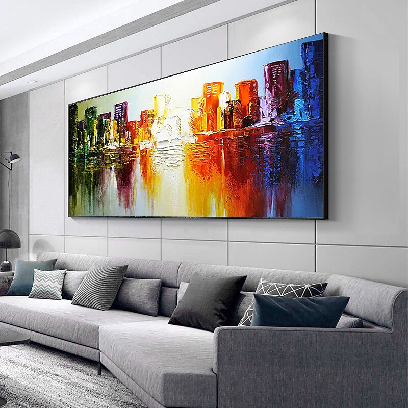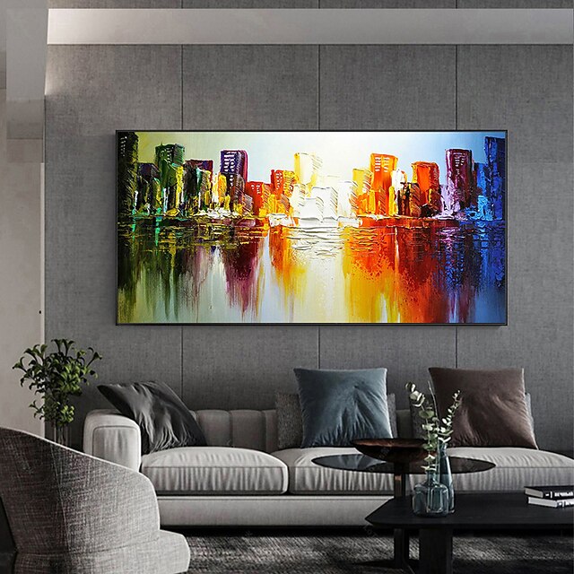More information about Handmade Oil Painting Canvas Wall Art Decoration Abstract Landscape Painting Color Architecture for Home Decor Rolled Frameless Unstretched Painting