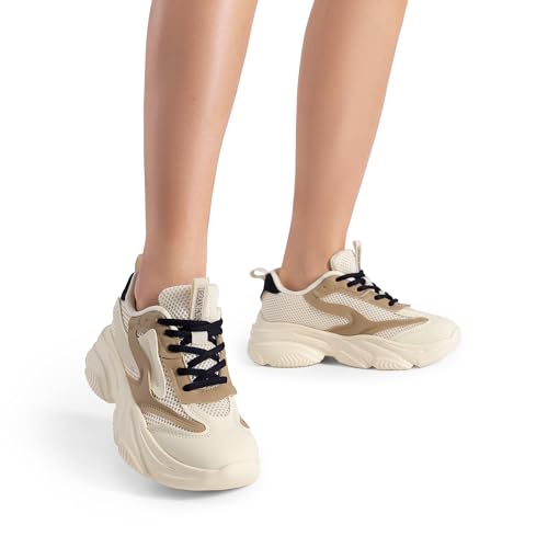 • Breathable Upper & Lining: With a mesh lining and an upper crafted from a combination of mesh and vegan leather, these women's fashion sneakers efficiently dissipate heat, wick away sweat, and facilitate optimal air circulation.