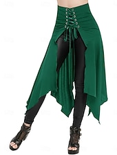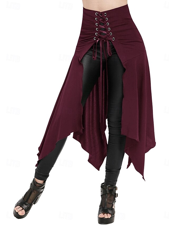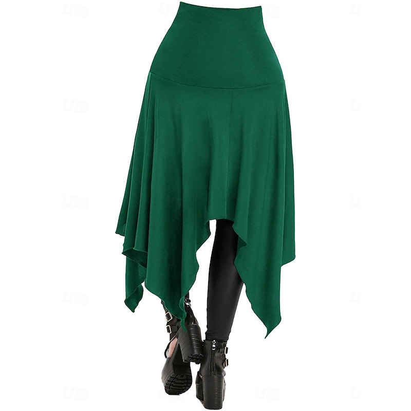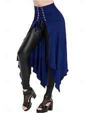 More information about Women's Skirt A Line Vintage Princess Lolita Casual Maxi High Waist Skirts Plain Pocket Asymmetric Hem Inelastic Party Street Wine Black Blue Green Spring Polyester
